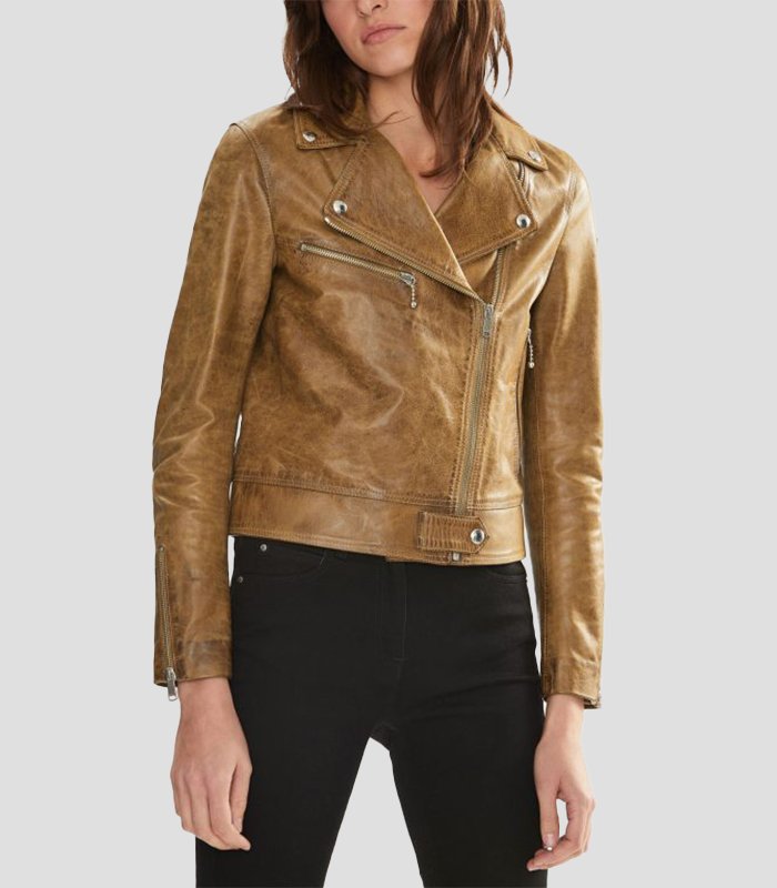 Women Pure Light Brown Leather Jacket